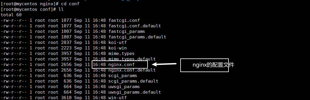 我们找到nginx的配置文件,它的位置再我们安装好的nginx中conf目录下,其中nginx.conf就是 nginx的配置文件。