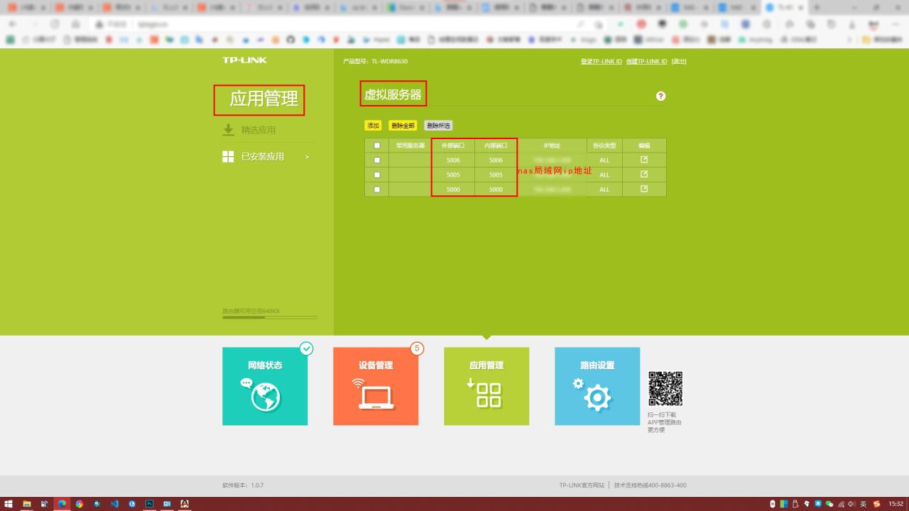 tplink路由器管理界面进入后,在应用管理里面的虚拟服务器应用中设置