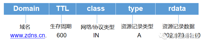 当我们查询域名zdns.cn的时候,查询结果得到的资源记录结构体中有如下数据: