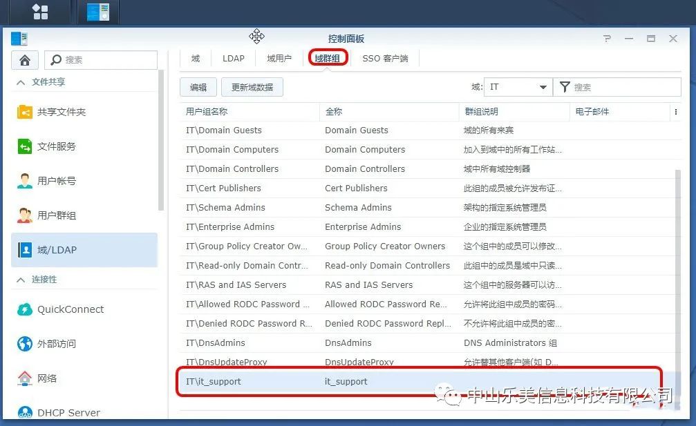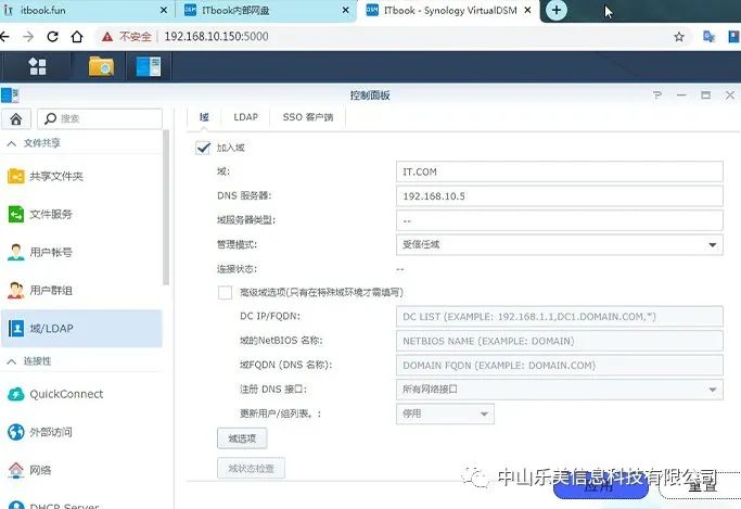 ·这里我将NAS加入到了 http://it.com 的域控中。