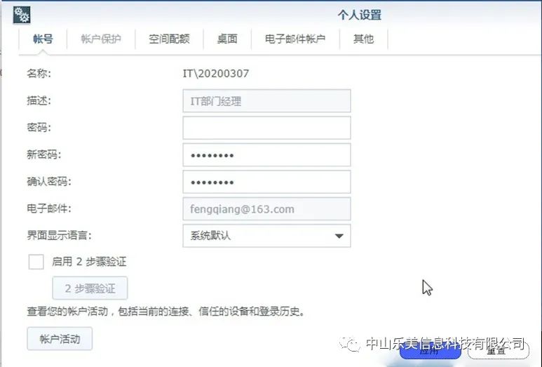·我们使用普通域用户it\20200307登录NAS,然后查看个人信息。