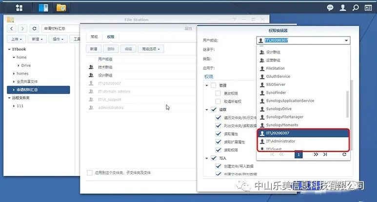 ·你可以在NAS控制面板–域中设置套件和共享文件夹权限,也可以在file station 中设置文件夹的权限。