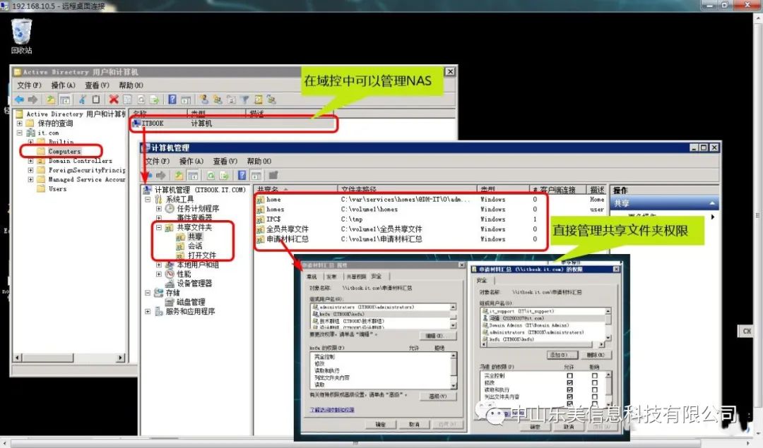 ·在域控管理台,可以看到NAS加入到了域控中,在域控管理台可直接管理NAS。