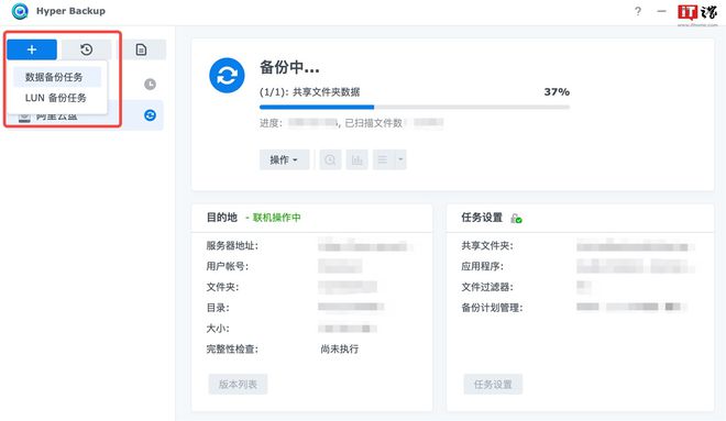 打开 Hyper Backup 套件,点击左上方加号,选择数据备份任务。