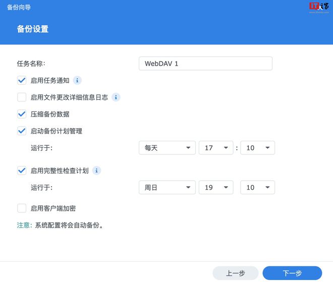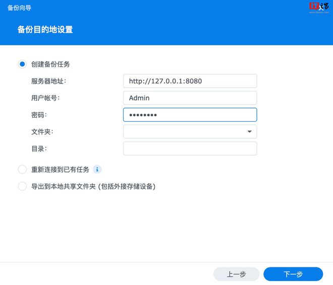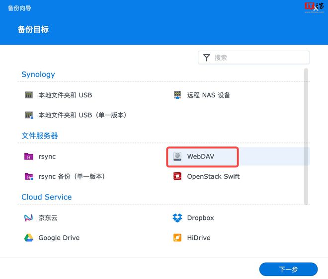 备份目标选择文件服务器——WebDAV,并点击下一步。