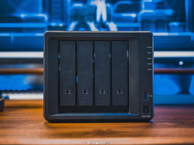 ▼在外观上DS423+与DS920+几乎完全一致,正面分布着4个3.5个硬盘仓、状态指示灯、USB3.2接口以及电源开关按键,若不是右下角的DS423+标识让我出戏,这不妥妥的就是920+。