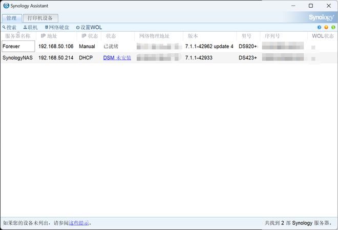 ▼有时候很迷,网页版工具找不到你的群晖设备,这时候就要用到Synology Assistant工具。在黑群晖的部署中还可能会遇到能找得到设备,但是安装系统后丢失的情况,可能是网卡型号不兼容,也可能是采用比较老的部署方式,在系统安装过程中没有断掉互联网连接。