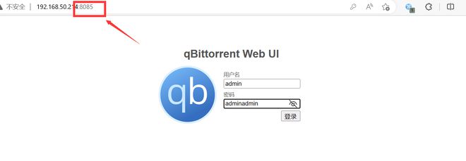 ▼注意qBit端口号,如果需要外网访问需要做好端口转发,qBit默认用户名admin,默认密码adminadmin。