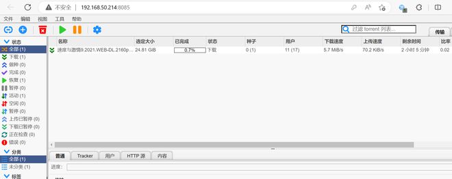 ▼进入到qBit界面之后首先修改默认密码。