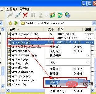 首先删除目录下的wp-config.php文件,此文件保存有wordpress相关的数据库用户名和密码等数据,是网站基本参数的文件。