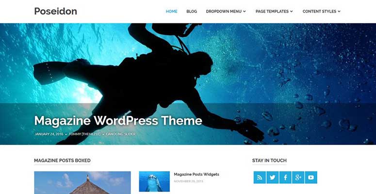 Poseidon是一个适合所有类型的WordPress博客的简单主题。它配备了图像滑块和主页上漂亮的导航菜单。它包含可轻松设计博客的小部件区域。
