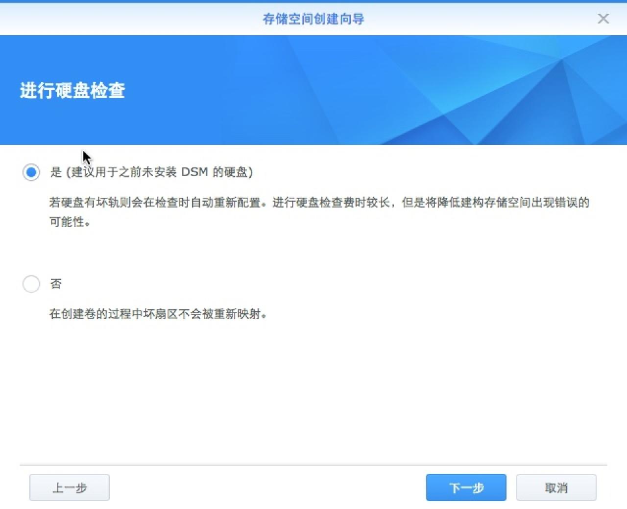 6.选择是否进行硬盘检查,一般来说选择否,当然也可以选择是,不过消耗的时间会比较长。
