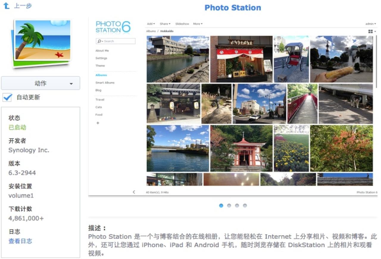PhotoStation 是一个用于存储照片的套件,可以很方便的创建一个在线相册,是我最喜欢的套件,创建的相册如下图所示。