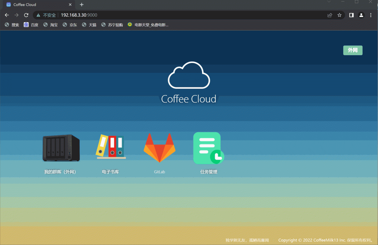④在浏览器中输入群晖的IP地址:自己设置的导航页端口号后按下Enter键确认,如果正常显示导航页内容则表示成功如下图所示: