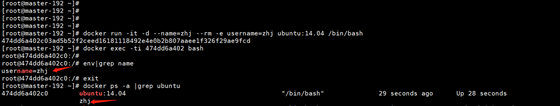 -e设置环境变量;-e username=zhj
