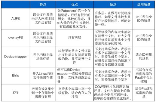 Docker支持AUFS、Btrfs、Device mapper、OverlayFS、ZFS五种存储驱动;
