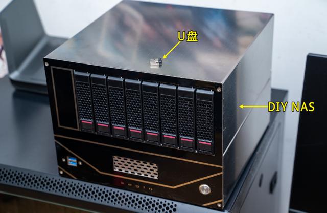 首先,是一台DIY的NAS,和一个小小的U盘: