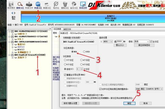 4、一步一步来,第1步:我们打开分区大师工具,选择到这个闪迪U盘: