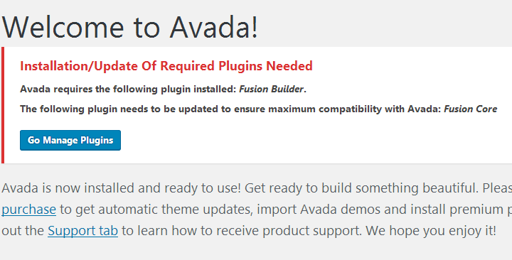 点击Activate激活子主题(Avada-Child-Theme)后,你会看到下图。