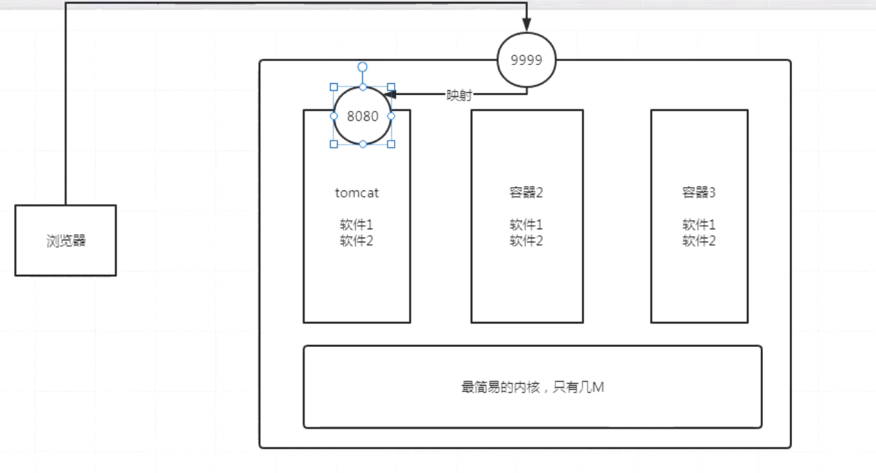 浏览器无法直接访问到容器,需要通过服务器端口:容器端口的映射才可以访问到容器