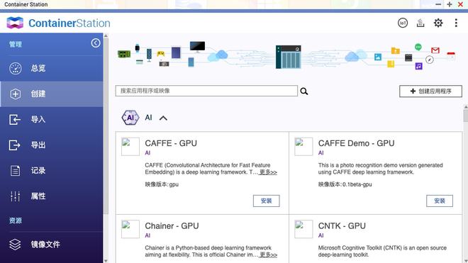 原始的Docker需要通过指令运行,这门槛着实有点儿高。Container Station有清晰且人性化的操控界面,我们可以在创建中直接搜索并下载程序即可,不需要输入复杂的指令。