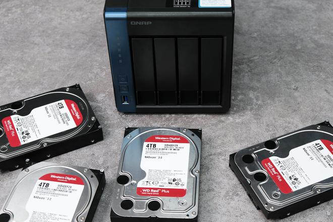 搭配TS-451D的硬盘我选的是比较热门的西部数据红盘Plus 4TB*4,16T的容量对我来说不论工作、娱乐还是存放电影、备份文件都足够使用了。