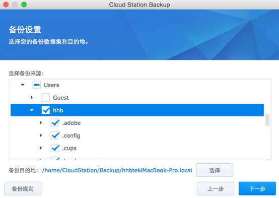 第三步:选择PC本地的备份来源和群晖NAS里的备份目的地即可