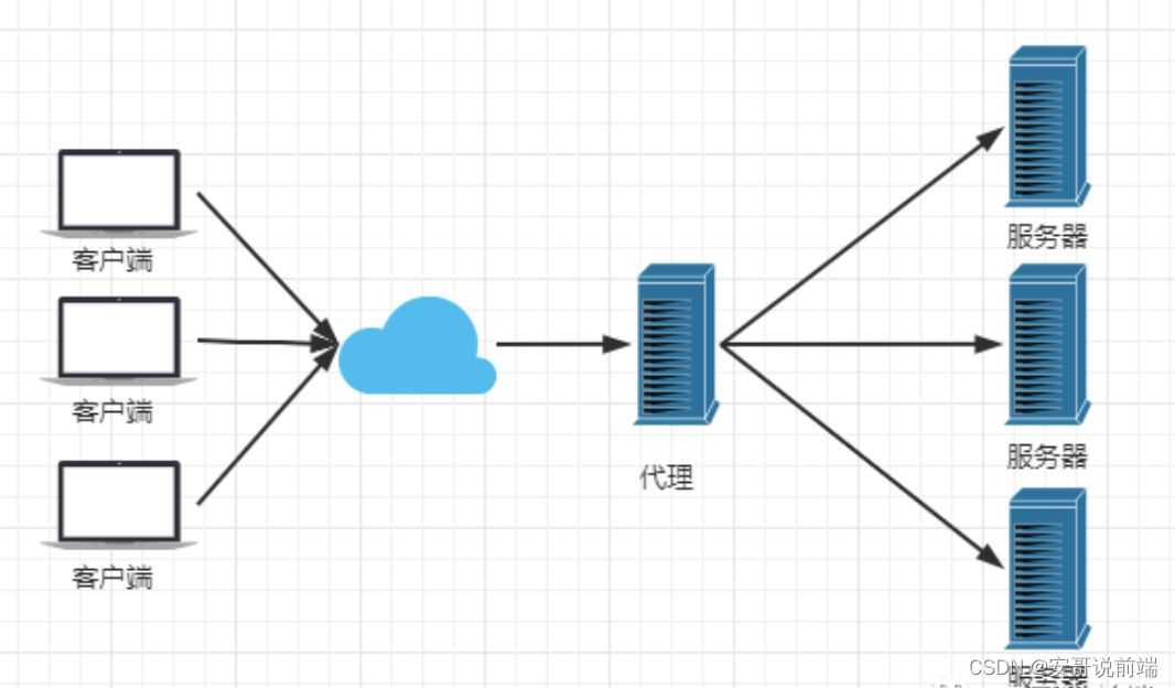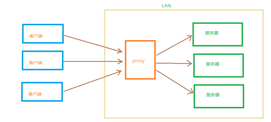 如果把局域网外的 Internet 想象成一个巨大的资源库,则局域网中的客户端要访问 Internet,则需要通过代理服务器来访问,这种代理服务就称为正向代理。