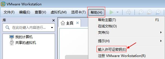 a、打开虚拟机主界面,点击“帮助”—“输入许可证密钥”;