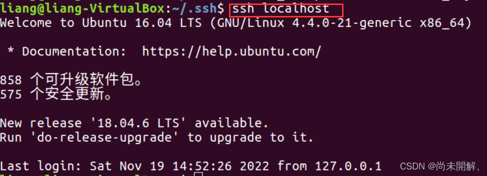 再验证ssh localhost 如下图,不用密码登录即为成功。