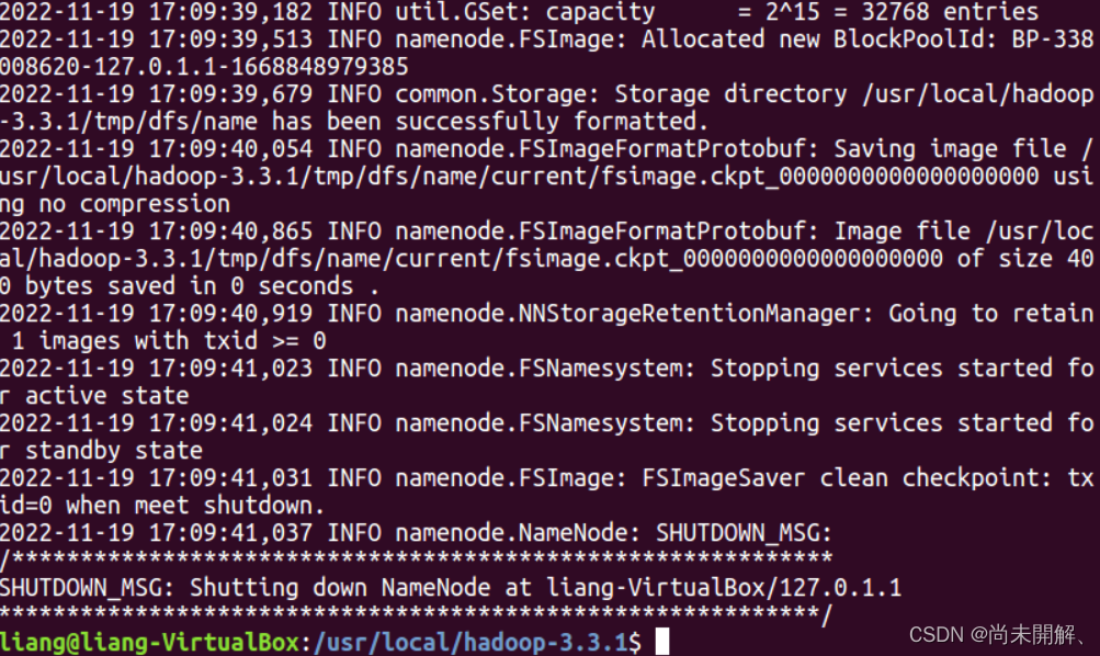 在hadop3.3.0目录下使用如下命令进行初始化: