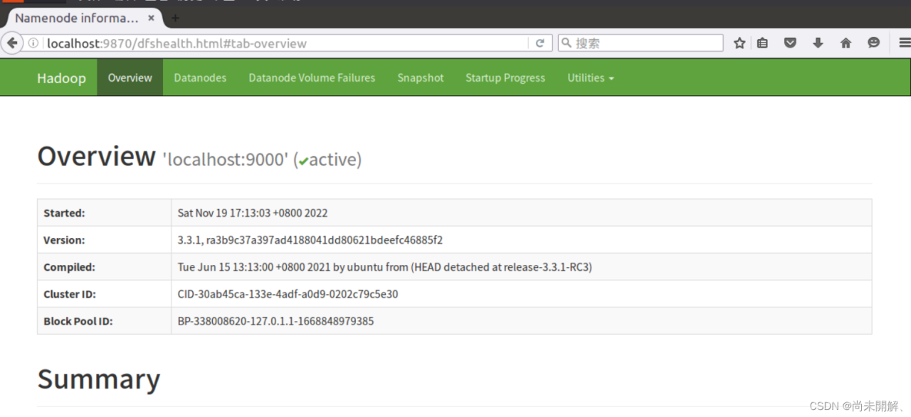 打开浏览器输入http://localhost:9870,成功打开