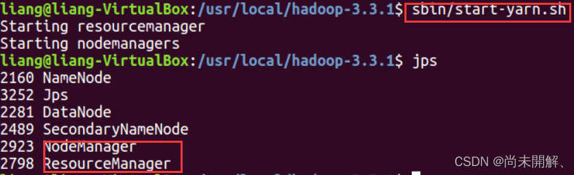 <property> <name>yarn.nodemanager.aux-services</name> <value>mapreduce_shuffle</value> </property> <!--Resource Manager--> <property> <name>yarn.resourcemanager.hostname</name> <value>liang-VirtualBox</value><!--你的hostname的主机名--> </property>