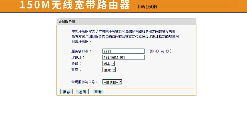 3、虚拟服务器给内部端口配置端口