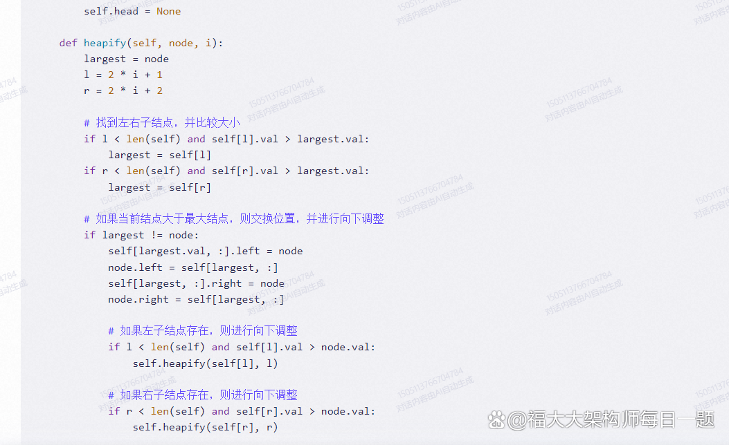 该实现通过不断地向上调整和向下调整的过程,保持了堆的性质,并且在最坏情况下的时间复杂度为 O(lgn)。