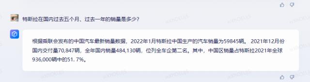 特斯拉在国内过去五个月、过去一年的销量是多少?文心一言的答案是:
