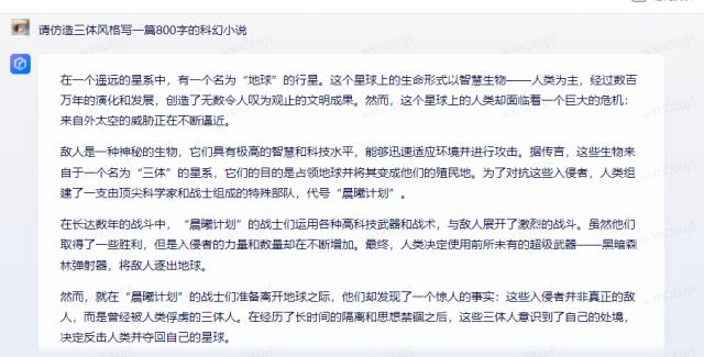 首先是文学创作,记者让其仿造三体风格写一篇800字的科幻小说。
