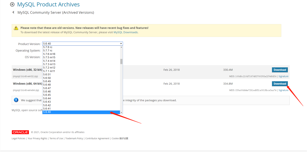 4.开始下载Mysql,下载地址:https://downloads.mysql.com/archives/community/