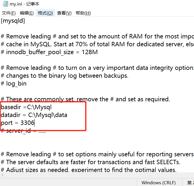 datadir = C:\Mysql\data #这个是存放mysql数据的文件夹