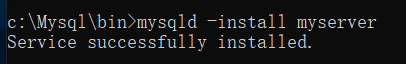 输入服务安装命令:mysqld -install myserver (注:myserver 为服务名称,可以自己决定)