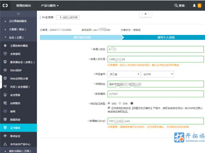 操作步骤:申请免费1年的ssl证书(传送门:https://common-buy.aliyun.com/?spm=5176.2020520163.cas.29.N0xOPM&commodityCode=cas#/buy)