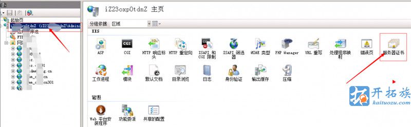 如下图,点击iis名称,双击服务器证书,再点击右侧的操作列表中的:导入…