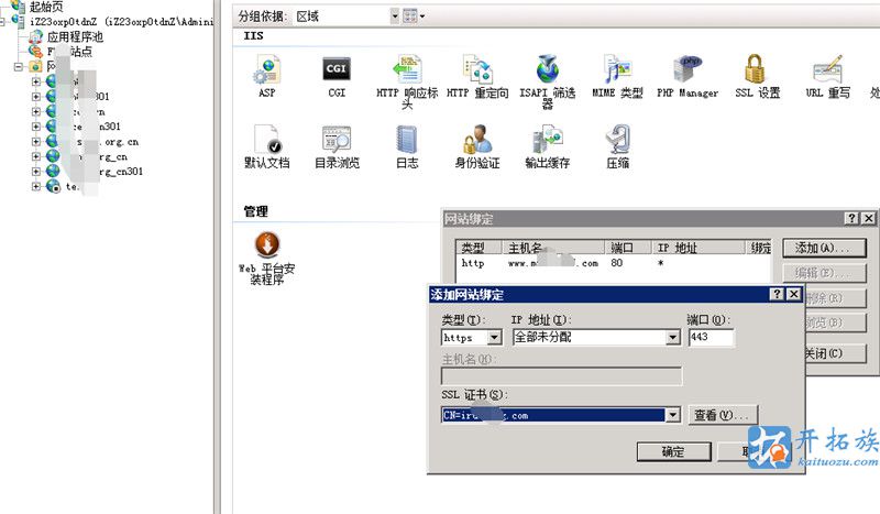 类型先https,SSL证书选择刚才导入的那个证书,点击确定,一切都搞定。