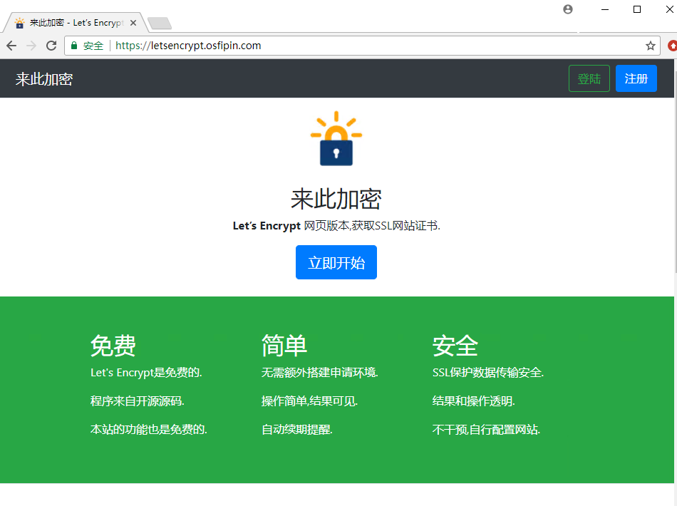 备注:https://letsencrypt.osfipin.com/ 不需要在自己服务器上部署软件,直接申请,目前需要三个月续期一次。