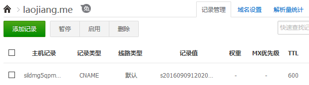 这里我们需要到域名解析面板中添加CNAME别名解析记录。