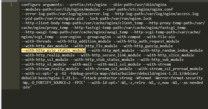 如果没有–with-http_gzip_static_module这个参数,需要为 nginx 安装 SSL 模块,