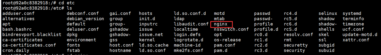 4、进入etc/nginx 目录,查看 nginx.conf 文件是否存在