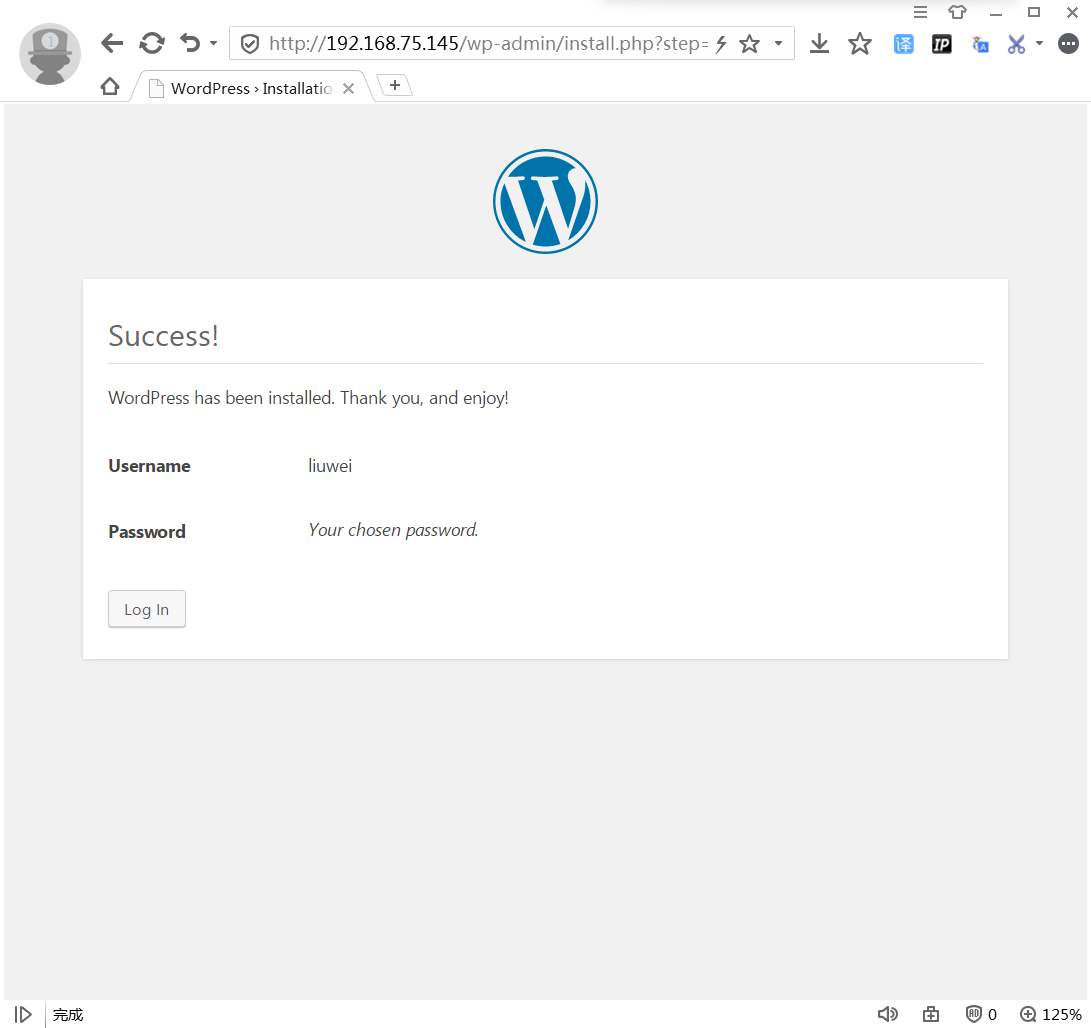 docker pull mysql:5.6.44 docker pull wordpress docker run -d --name wp-mysql -e MYSQL_ROOT_PASSWORD=123456 -p 3306:3306 mysql:5.6.44 docker run -d --name wp --link wp-mysql:mysql -p 80:80 wordpress docker ps CONTAINER ID IMAGE COMMAND CREATED STATUS PORTS NAMES ce971d9ae8a3 wordpress "docker-entrypoint.s…" 2 minutes ago Up 2 minutes 0.0.0.0:80->80/tcp wp b0759a75775d mysql:5.6.44 "docker-entrypoint.s…" 4 minutes ago Up 4 minutes 0.0.0.0:3306->3306/tcp wp-mysql