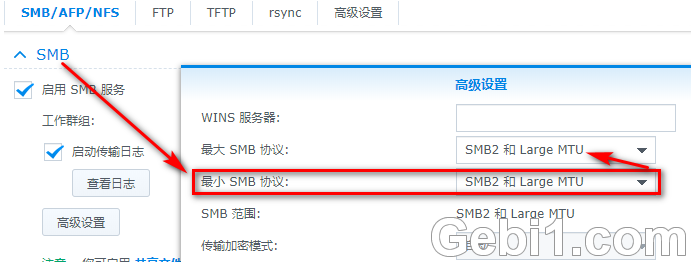 所以只需要设置群晖的的smb协议最低为smb2即可,
