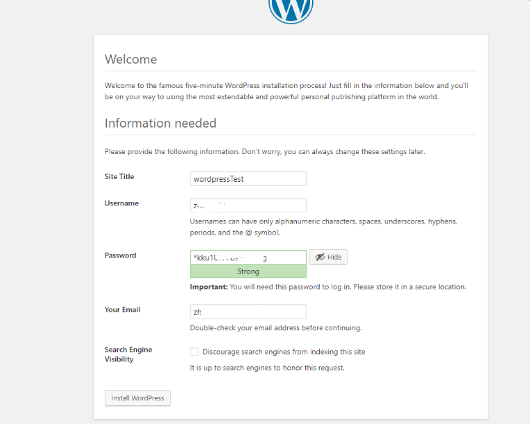 WORDPRESS_DB_NAME 数据库名称,如果不填此项,默认数据库为wordpress